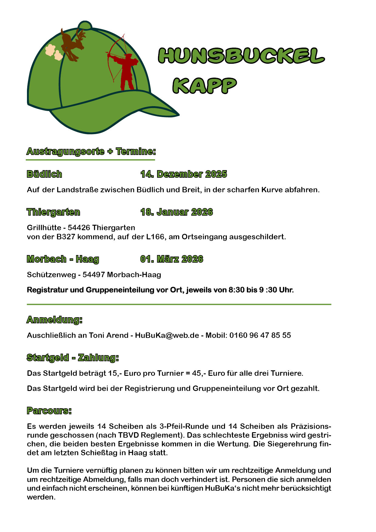 Hunsbuckel Kapp ist eine Winterrunde mit 3 Ein-Tages-Turnieren.